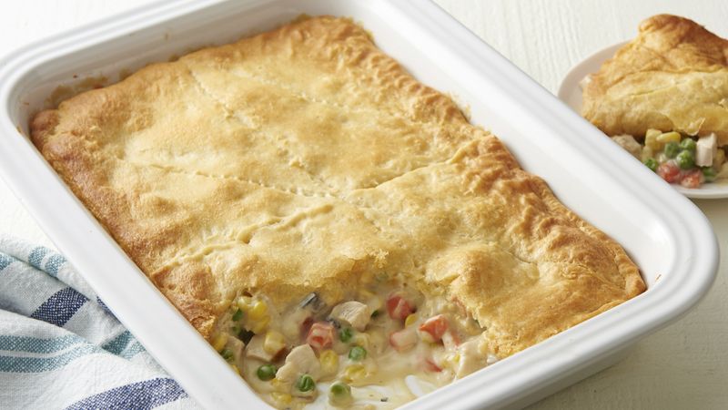 A classic southern comfort dish, our homemade chicken pot pie is made with slow-cooked chicken, mixe..